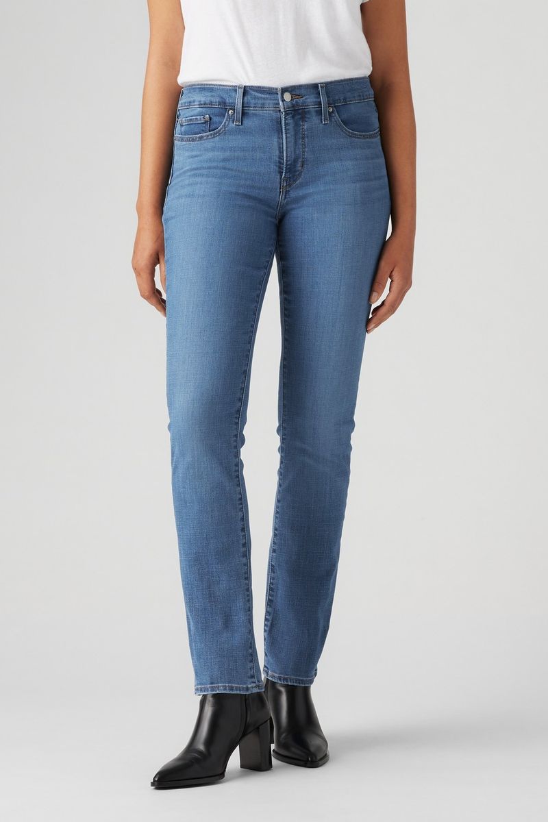 Levi’s® 314 Shaping Straight Jeans te ofrece realzar tus curvas y amoldar perfectamente tu figura, esto gracias a su tecnología Tummy-Slimming que comprime tu abdomen. Es un pantalón de corte ajustado a la cadera y muslos.